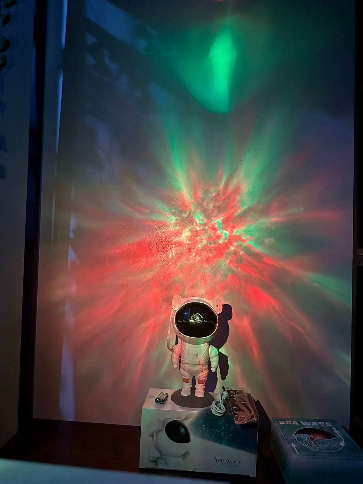 Zamień swój pokój w przypadku uderzenia pełnego gwiazd i kolorowych mgławic! Dziesięć projektorów LED w obudowie astronautyki do połączenia nowoczesnego designu i relaksującego efektu świetlnego. Idealny do sypialni, pokoju dziecięcego lub jako wyjątkowy prezent. 🎁