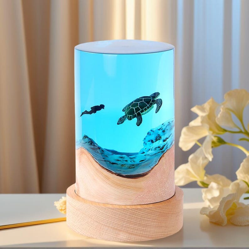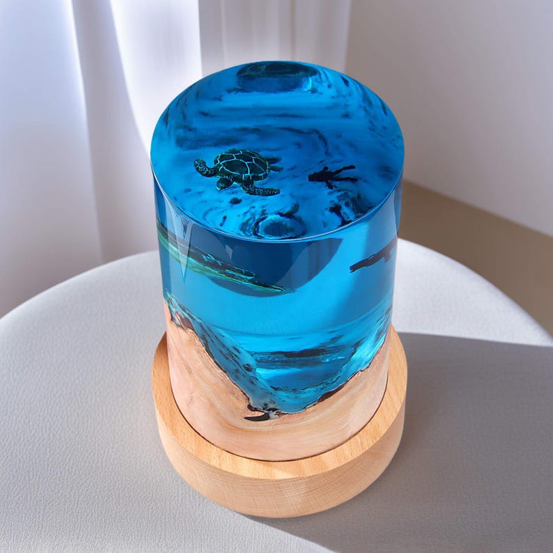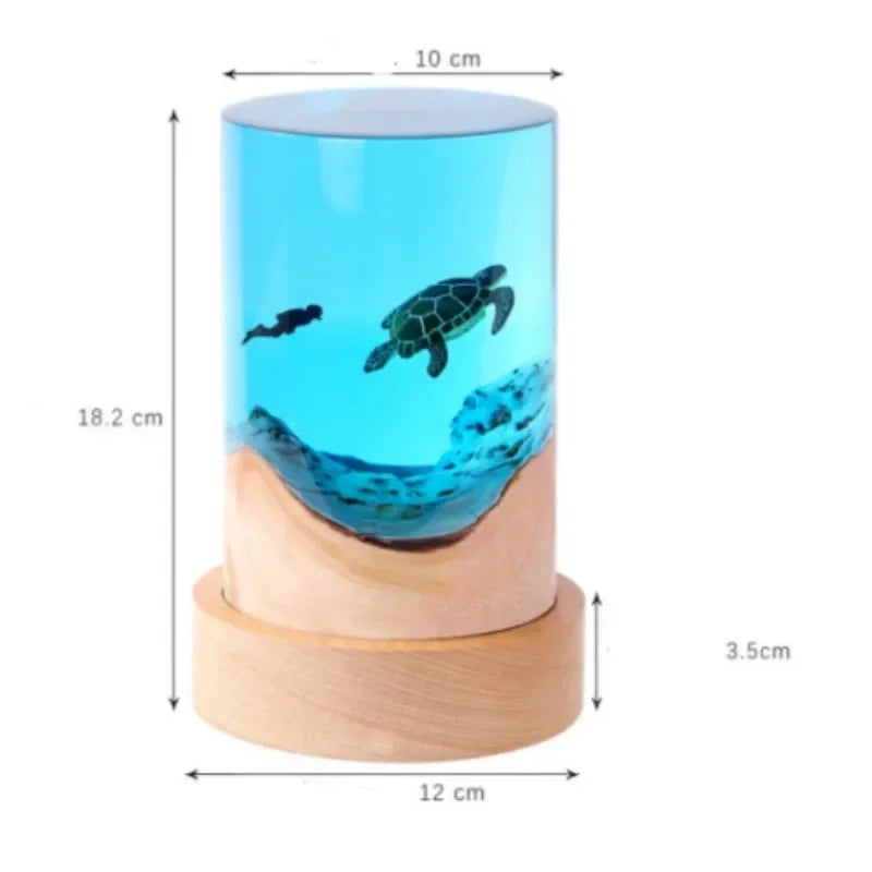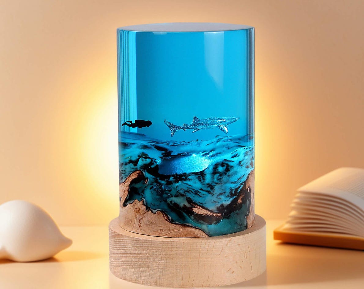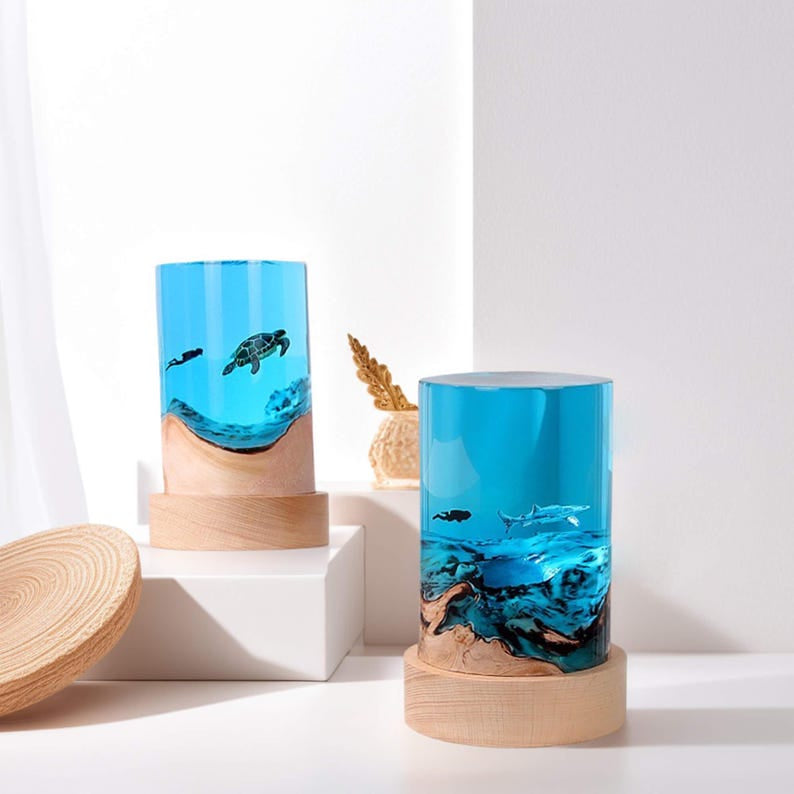 Dekoracyjna lampka nocna biurkowa z drewna i żywicy
